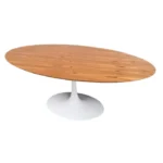 Mesa cuja base lembra um caule de flor, a famosa mesa Tulipa, conhecida internacionalmente pelo sobrenome de seu criador, o finlandês Eero Saarinen. Desenhada em 1956, possui formas orgânicas das mais ousadas do Movimento Modernista. Sem descontinuidade de formas, o que lhe confere extrema elegância, é solução única da história do design e portanto não envelhece. A base tem o contorno que propícia um maior número de cadeiras.