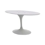 Mesa cuja base lembra um caule de flor, a famosa mesa Tulipa, conhecida internacionalmente pelo sobrenome de seu criador, o finlandês Eero Saarinen. Desenhada em 1956, possui formas orgânicas das mais ousadas do Movimento Modernista. Sem descontinuidade de formas, o que lhe confere extrema elegância, é solução única da história do design e portanto não envelhece. A base tem o contorno que propícia um maior número de cadeiras.
