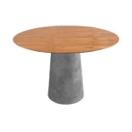 Mesa de Jantar Cone Redonda 107 cm – Cimento Queimado e Tampo em Lamina Natural Cinamomo