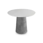 O destaque dessa mesa é o formato de cone, onde a base se estreita gradualmente em direção ao tampo. Essa característica distinta confere à mesa uma presença visual marcante, ao mesmo tempo em que proporciona estabilidade e equilíbrio à estrutura.
