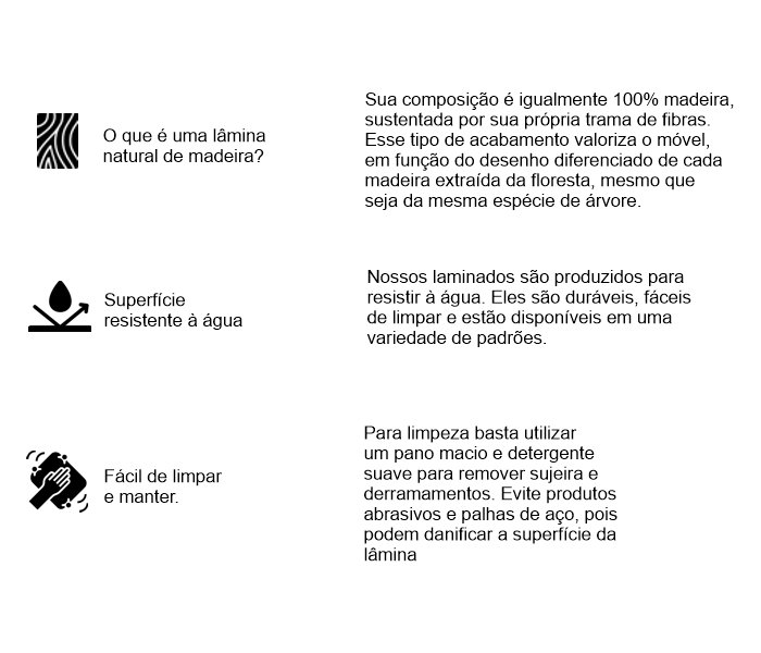 – Tampo em MDF com lâmina de madeira cinamomo ebanizado.