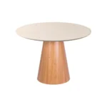 Mesa de Jantar Cone Redonda 90 cm – Lâmina de Madeira Cinamomo e Laca Off White