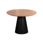 O destaque dessa mesa é o formato de cone, onde a base se estreita gradualmente em direção ao tampo. Essa característica distinta confere à mesa uma presença visual marcante, ao mesmo tempo em que proporciona estabilidade e equilíbrio à estrutura.