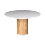 Mesa de Jantar Cone Redonda 90 cm – Lâmina de Madeira Cinamomo e Laca Off White