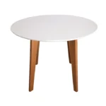 Mesa de Jantar Cone Redonda 90 cm – Lâmina de Madeira Cinamomo Castanho e Laca Branca com Vidro