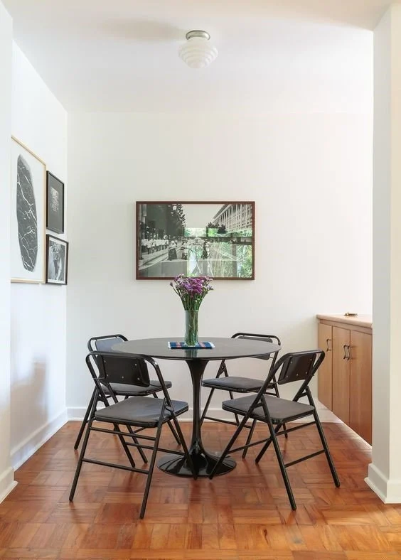 Mesa cuja base lembra um caule de flor, a famosa mesa Tulipa, conhecida internacionalmente pelo sobrenome de seu criador, o finlandês Eero Saarinen. Desenhada em 1956, possui formas orgânicas das mais ousadas do Movimento Modernista. Sem descontinuidade de formas, o que lhe confere extrema elegância, é solução única da história do design e portanto não envelhece. A base tem o contorno que propícia um maior número de cadeiras.