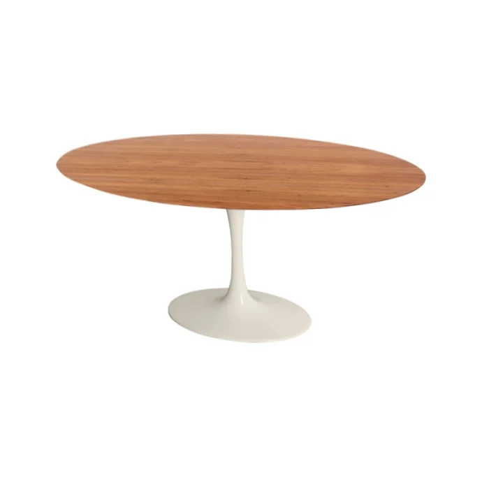 Mesa cuja base lembra um caule de flor, a famosa mesa Tulipa, conhecida internacionalmente pelo sobrenome de seu criador, o finlandês Eero Saarinen. Desenhada em 1956, possui formas orgânicas das mais ousadas do Movimento Modernista. Sem descontinuidade de formas, o que lhe confere extrema elegância, é solução única da história do design e portanto não envelhece. A base tem o contorno que propícia um maior número de cadeiras.