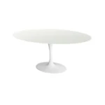 Mesa cuja base lembra um caule de flor, a famosa mesa Tulipa, conhecida internacionalmente pelo sobrenome de seu criador, o finlandês Eero Saarinen. Desenhada em 1956, possui formas orgânicas das mais ousadas do Movimento Modernista. Sem descontinuidade de formas, o que lhe confere extrema elegância, é solução única da história do design e portanto não envelhece. A base tem o contorno que propícia um maior número de cadeiras.
