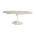 Mesa cuja base lembra um caule de flor, a famosa mesa Tulipa, conhecida internacionalmente pelo sobrenome de seu criador, o finlandês Eero Saarinen. Desenhada em 1956, possui formas orgânicas das mais ousadas do Movimento Modernista. Sem descontinuidade de formas, o que lhe confere extrema elegância, é solução única da história do design e portanto não envelhece. A base tem o contorno que propícia um maior número de cadeiras.