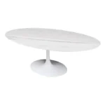 Mesa cuja base lembra um caule de flor, a famosa mesa Tulipa, conhecida internacionalmente pelo sobrenome de seu criador, o finlandês Eero Saarinen. Desenhada em 1956, possui formas orgânicas das mais ousadas do Movimento Modernista. Sem descontinuidade de formas, o que lhe confere extrema elegância, é solução única da história do design e portanto não envelhece. A base tem o contorno que propícia um maior número de cadeiras.