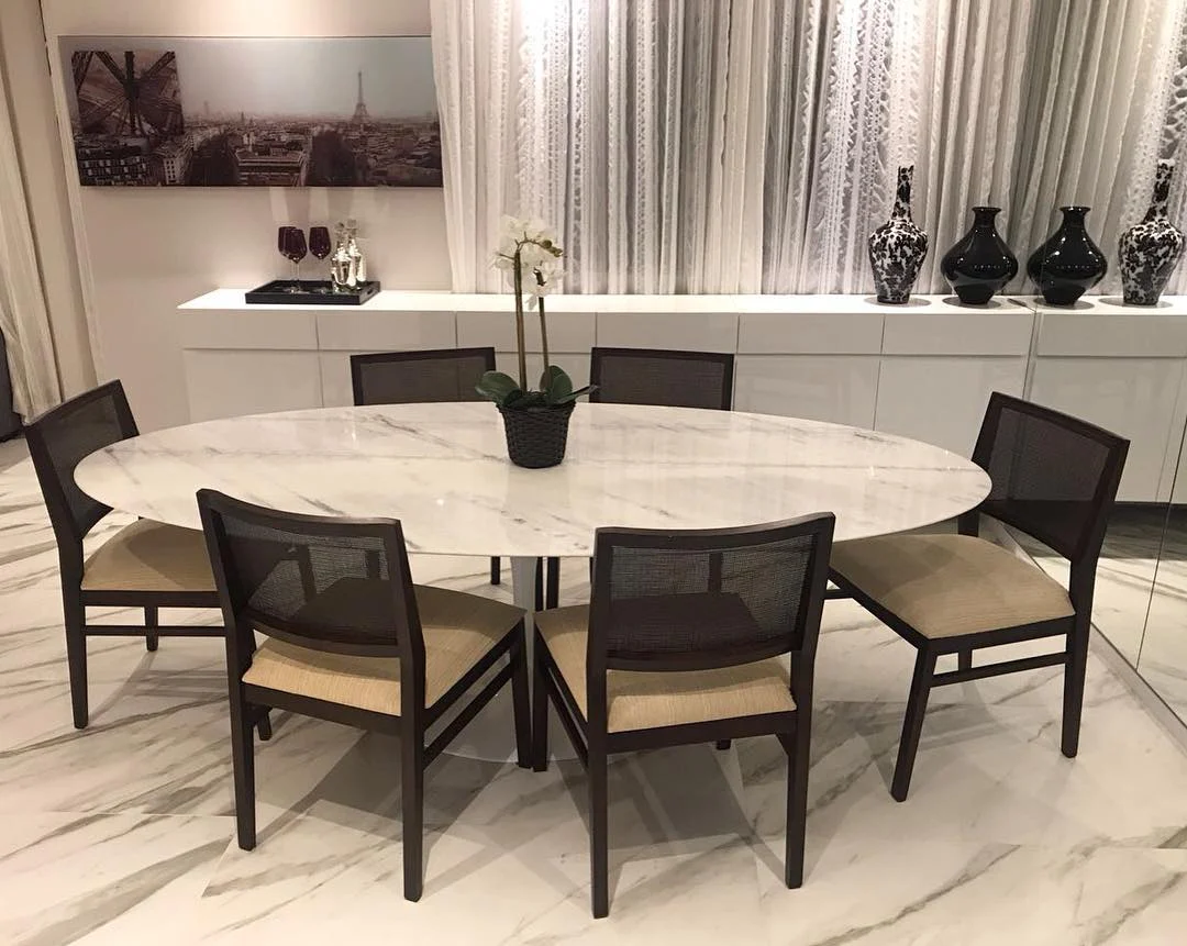 Mesa de Jantar Saarinen Tulipa – Oval – 198×122 cm – Marmore Espirito Santo