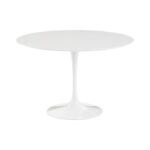 Mesa cuja base lembra um caule de flor, a famosa mesa Tulipa, conhecida internacionalmente pelo sobrenome de seu criador, o finlandês Eero Saarinen. Desenhada em 1956, possui formas orgânicas das mais ousadas do Movimento Modernista. Sem descontinuidade de formas, o que lhe confere extrema elegância, é solução única da história do design e portanto não envelhece. A base tem o contorno que propícia um maior número de cadeiras.