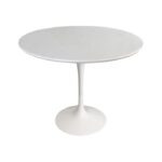 Mesa cuja base lembra um caule de flor, a famosa mesa Tulipa, conhecida internacionalmente pelo sobrenome de seu criador, o finlandês Eero Saarinen. Desenhada em 1956, possui formas orgânicas das mais ousadas do Movimento Modernista. Sem descontinuidade de formas, o que lhe confere extrema elegância, é solução única da história do design e portanto não envelhece. A base tem o contorno que propícia um maior número de cadeiras.