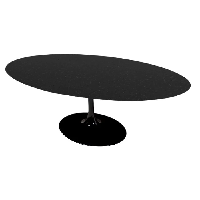 Mesa cuja base lembra um caule de flor, a famosa mesa Tulipa, conhecida internacionalmente pelo sobrenome de seu criador, o finlandês Eero Saarinen. Desenhada em 1956, possui formas orgânicas das mais ousadas do Movimento Modernista. Sem descontinuidade de formas, o que lhe confere extrema elegância, é solução única da história do design e portanto não envelhece. A base tem o contorno que propícia um maior número de cadeiras.