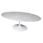 Mesa cuja base lembra um caule de flor, a famosa mesa Tulipa, conhecida internacionalmente pelo sobrenome de seu criador, o finlandês Eero Saarinen. Desenhada em 1956, possui formas orgânicas das mais ousadas do Movimento Modernista. Sem descontinuidade de formas, o que lhe confere extrema elegância, é solução única da história do design e portanto não envelhece. A base tem o contorno que propícia um maior número de cadeiras.
