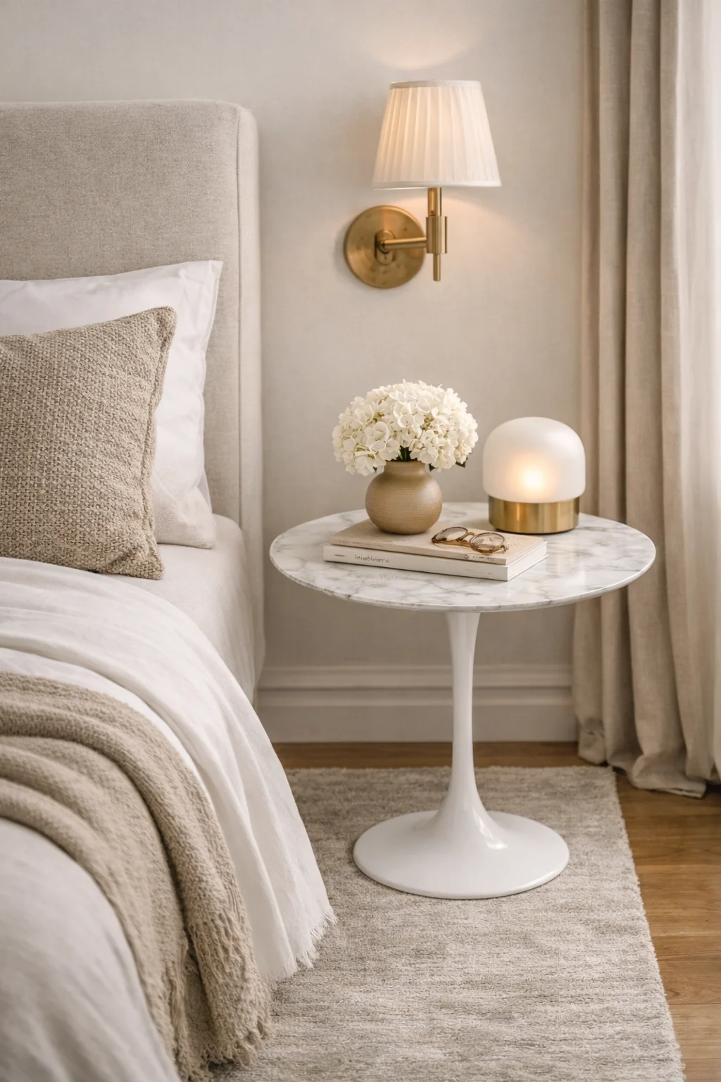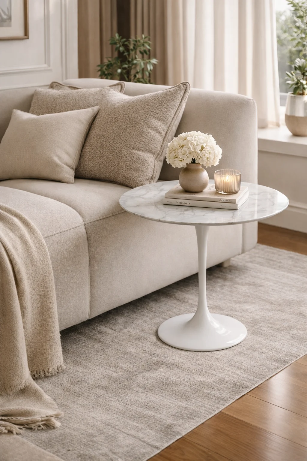 Mesa Lateral Saarinen Tulipa Redonda – 50 cm – Marmore Espirito Santo
