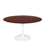 Mesa cuja base lembra um caule de flor, a famosa mesa Tulipa, conhecida internacionalmente pelo sobrenome de seu criador, o finlandês Eero Saarinen. Desenhada em 1956, possui formas orgânicas das mais ousadas do Movimento Modernista. Sem descontinuidade de formas, o que lhe confere extrema elegância, é solução única da história do design e portanto não envelhece. A base tem o contorno que propícia um maior número de cadeiras.